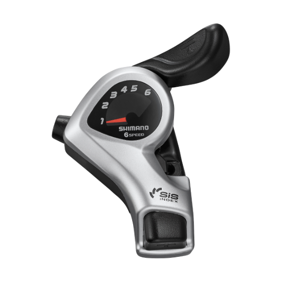 • SHIMANO TOURNEY SL-TX50-6R to przeznaczona do rowerów górskich, sterowana kciukiem dźwignia ze wskaźnikiem OPTICAL GEAR DISPLAY firmy SHIMANO informującym rowerzystów o wybranym przełożeniu podczas jazdy.